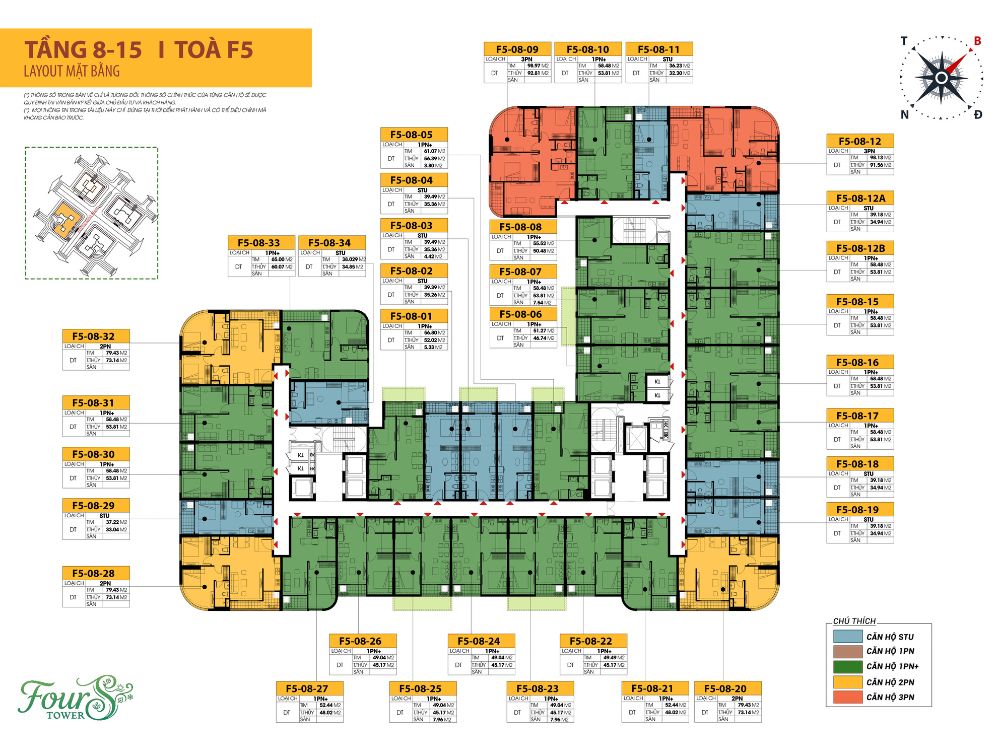 FourS Tower Đà Nẵng là tổ hợp căn hộ cao cấp gồm 4 tòa tháp (Mai – Trúc – Cúc – Tùng), cao 20 tầng nổi và 2 tầng hầm, tọa lạc tại khu đô thị sinh thái Sun Riverpolis, phường Ngũ Hành Sơn. Dự án nổi bật với concept “bốn mùa”, thiết kế tối ưu ánh sáng, thông gió tự nhiên cùng hệ tiện ích như hồ bơi, gym, khu vui chơi và không gian xanh.